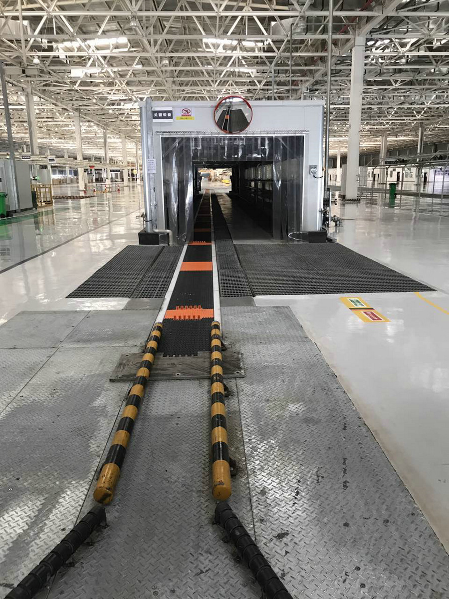 淋雨系統(tǒng)由室體、噴淋系統(tǒng)、鋼結(jié)構(gòu)骨架、地坑蓋板、地坑照明及電氣控制系統(tǒng)等組成。淋雨強(qiáng)度可達(dá)中高等強(qiáng)度≧25L(min*㎡),淋雨時間≧15分鐘,水泵可采用變頻可調(diào),淋雨方式(手)自動全噴淋。